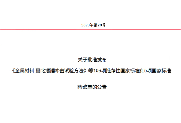 近日,國家市場監督管理局(國家標準化管理委員會)批準《金屬材料 夏比擺錘沖擊試驗方法》等106項推薦性國家標準和5項國家標準修改單,并予以公布。多項標準涉及多項化學分析方法。