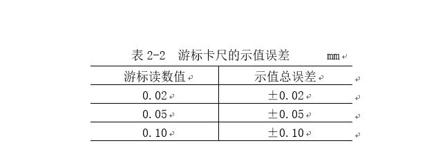 測量或檢驗零件尺寸時,要按照零件尺寸的精度要求,選用相適應的量具。游標卡尺是一種中等精度的量具,它只適用于中等精度尺寸的測量和檢驗。用游標卡尺去測量鍛鑄件毛坯或精度要求很高的尺寸,都是不合理的。前者容易損壞量具,后者測量精度達不到要求,因為量具都有一定的示值誤差,游標卡尺的示值誤差見表2-2。